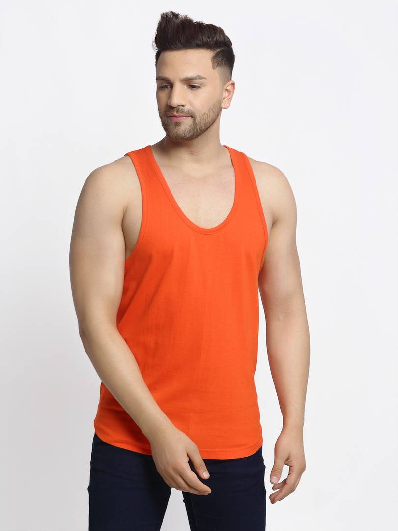 Men Orange solid Casual Drop Cut sleeveless gym vest