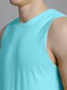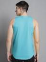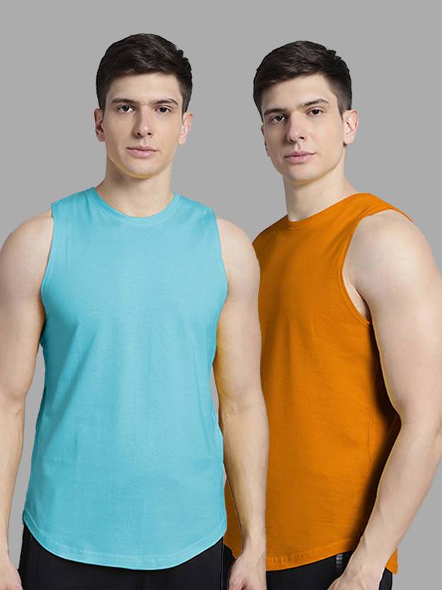 Turquoise Blue & Mustard slim-fit sleeveless T-shirt vests has Round neck