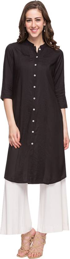 SRISHTI By fbb Women Solid Cotton Rayon Frontslit Kurta (Black)