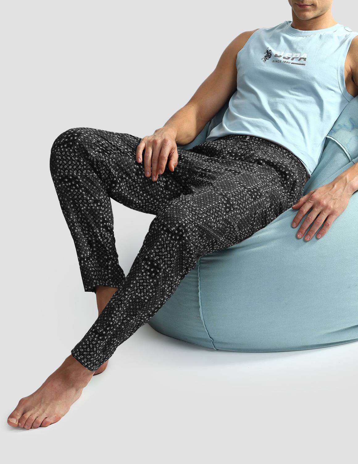 Unleash your potential in our printed lounge pants,Blanc.Tailored from high-quality printed cotton fabric, these pants offer a soft, breathable touch, creating an optimal balance of comfort and style. The streamlined design and flexible construction allow for effortless movement during your activities. Step into the perfect blend of performance and fashion with these printed pants.