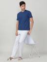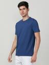 FCUK Men Solid Crew Neck Cotton Blend Blue T-Shirt