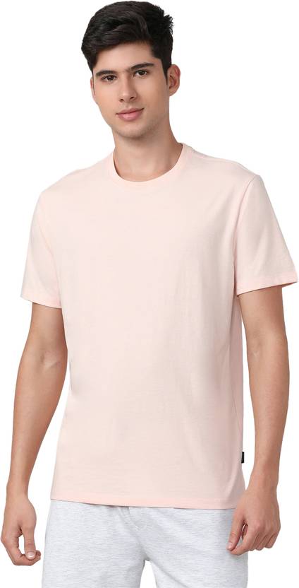 FCUK Men Solid Crew Neck Cotton Blend Pink T-Shirt