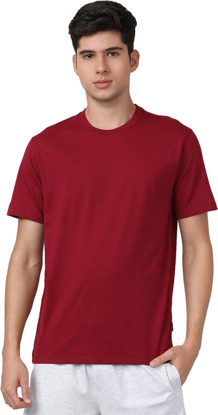 FCUK Men Solid Crew Neck Cotton Blend Red T-Shirt