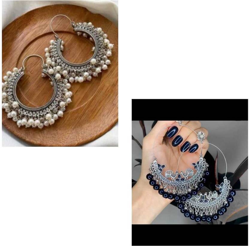 FD COLLECTION Silver Black Chandbali Oxidiesd Combo Earrings Metal Chandbali Earring
