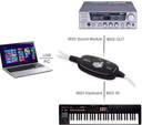 fdealz USB IN-OUT MIDI Cable Converter PC to Music Keyboard Adapter Cord LEDs indicate power in, MIDI in the signal and MIDI signal out (Black MIDI Adapter Cable PC to Music Electronic Keyboard Converter Cord Keyboard)