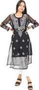 Women Self Design Georgette Straight Kurti-with inner
