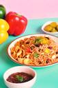 | Ingredients | - Mexican Rice: Water, Basmati Rice, Tomato, Kidney Beans, Jalapenos, Bell Peppers, Sweet Corn, Onion, Sunflower Oil, Salt, Garlic, Spices, Baked Nachos: Quinoa Flour, Urad dal flour, Rice flour, Tapioca starch, Edible Refined Oil, Salt, Spices, Creamy Alfredo Pasta: Water, Fresh cream, Durum wheat pasta, Cheddar cheese, Mushroom, Bell Peppers, Salt, Sunflower Oil, Arrowroot Powder, Spicy Arrabbiata Pasta: Water, Tomato, Durum wheat pasta, Bell peppers, Sunflower Oil, Salt, Garlic, Black olives, Arrowroot powder, Spices