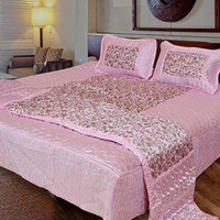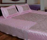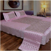 Feathersoft Satin Double King Sized Bedding Set (Pink, 1 bedsheet, 1 Comfortable, 2 Pillow Cover)