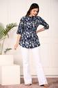 Top is like a shirt style, Buttons for closure, Mandarien Neck Stylish Design, Rayon Fabric to feel very impresive look, best suit with laggies, Jeans & Pants, Color and print quality is very fastness.
