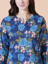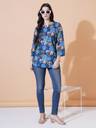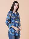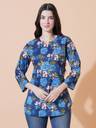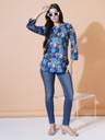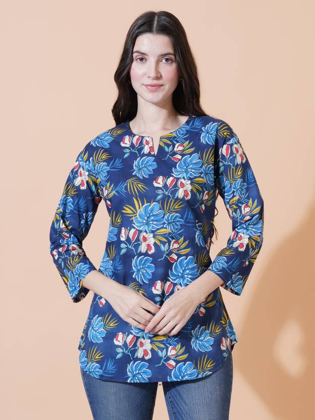 Printed Style Women Top with Notch Neck Collar and third Quarter Sleeve, Cotton Fabric, Treading Printed Sylish Top, Fabric and Print Quality is superb, Hip Length Curved Hemline Top.