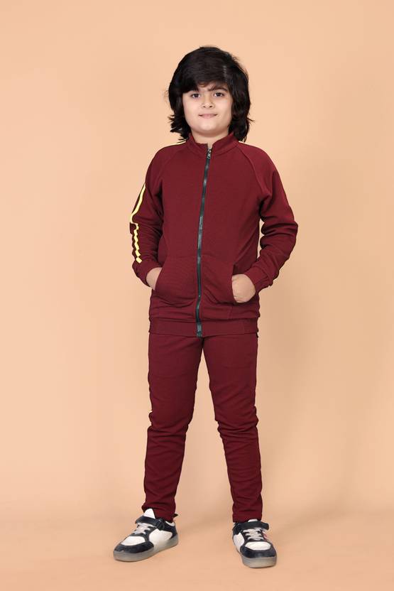 FEBVIBE Solid Boys & Girls Track Suit