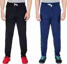 FOXTER Pack of 2 Men Solid Black, Blue Track Pants