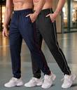 Pack of 2 Men Solid Dark Blue, Black Track Pants