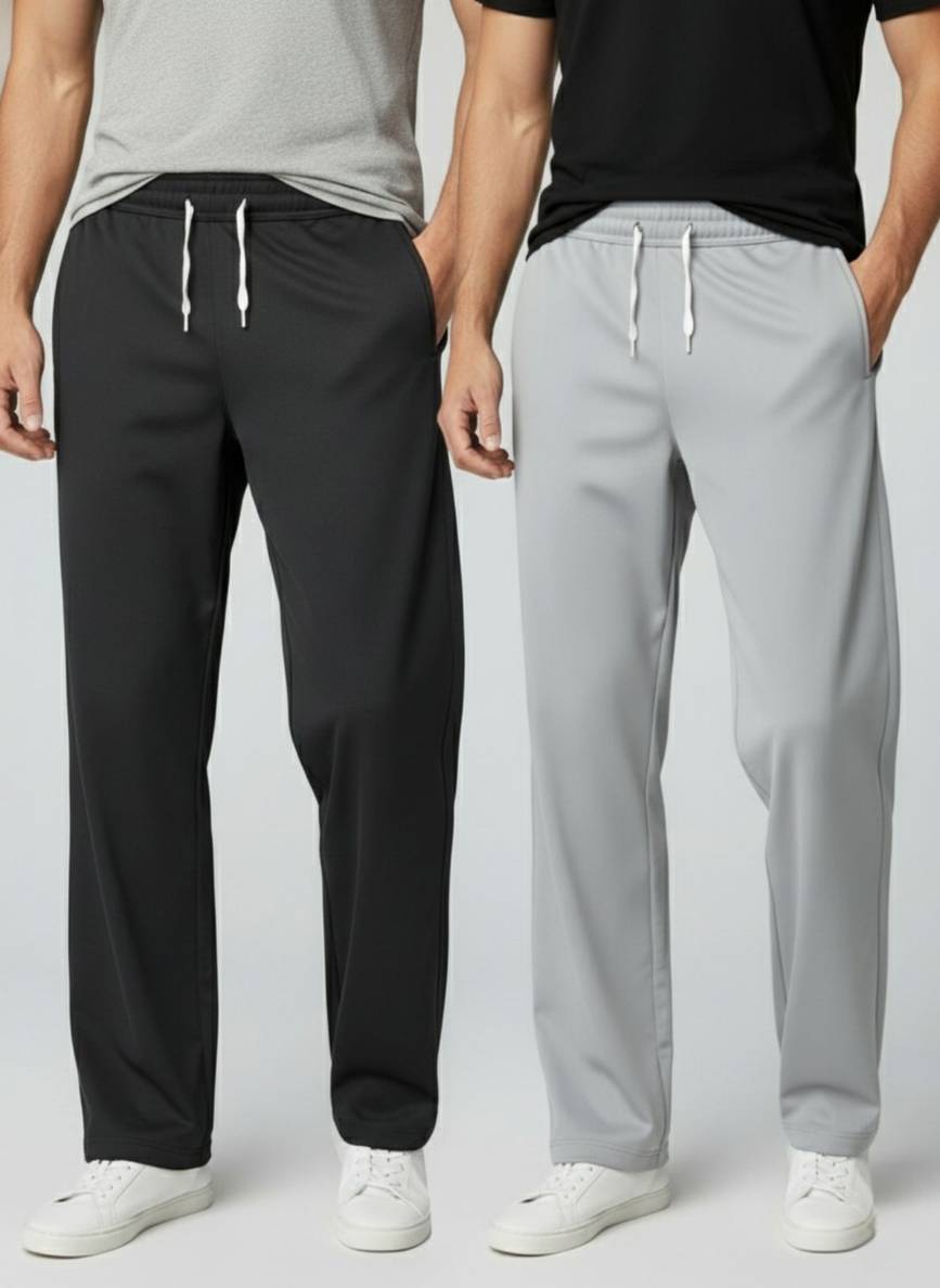 These men's combo track pants have a solid pattern, blending well with everyday wear. They're minimal and refined, suitable for casual and light outdoor use. They feature an elasticated waistband with a drawstring for adjustable fit, and convenient side pockets for small essentials.Cotton can help absorb moisture and allow airflow, keeping you at ease while relaxing at home or stepping out for errands. Moreover, the fabric drapes gently against the skin without clinging, encouraging movement without restriction.