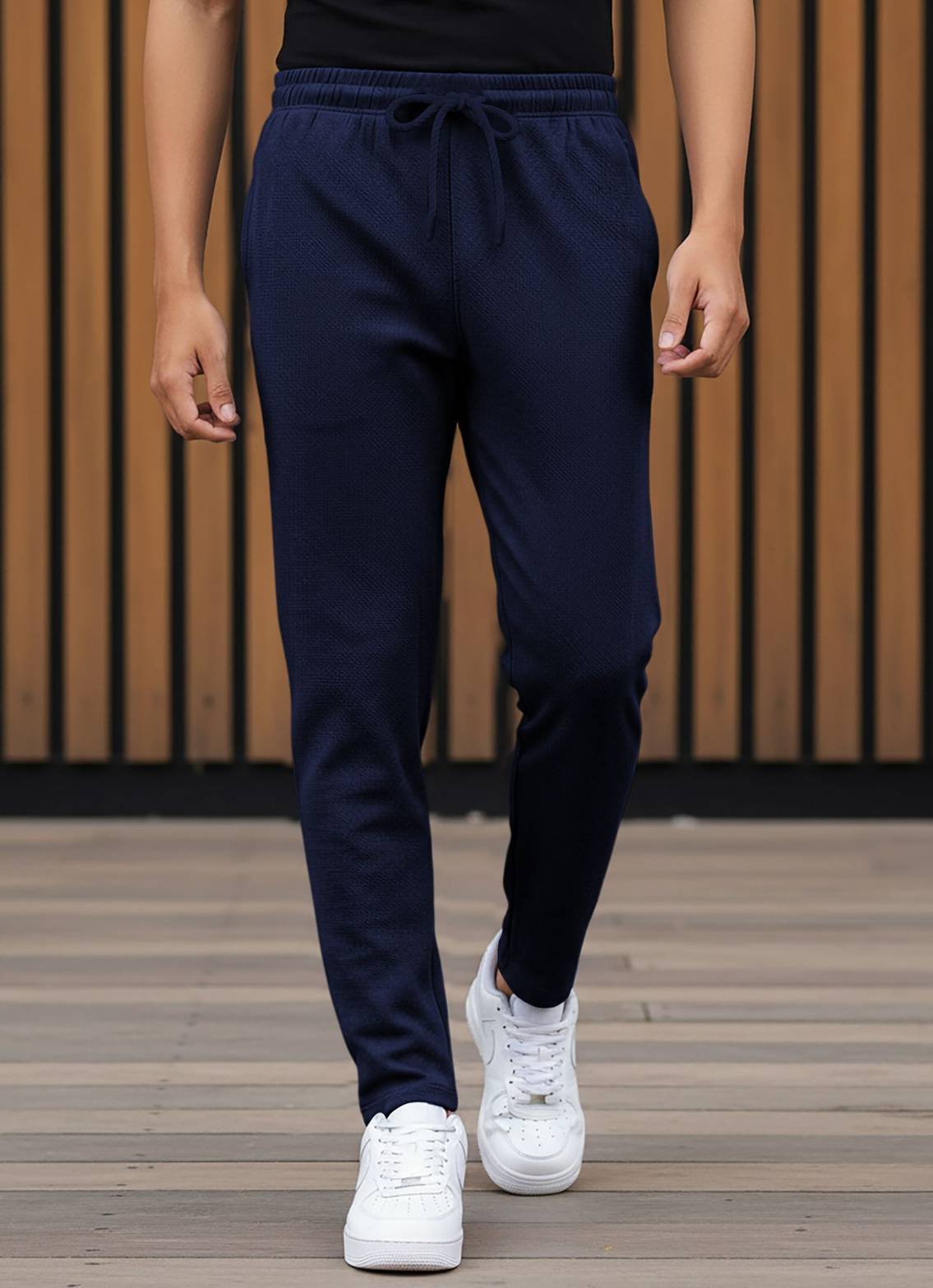 Men Solid Dark Blue Track Pants