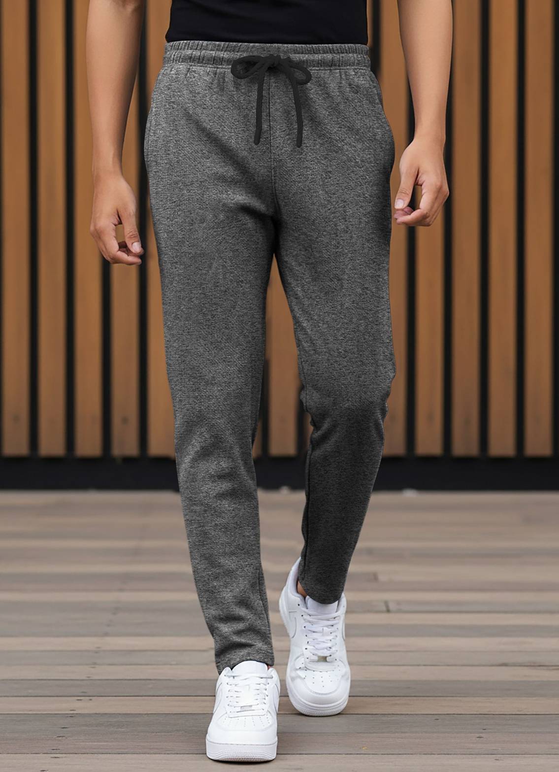 Men Solid Grey Track Pants