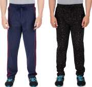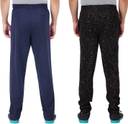 Pack of 2 Men Solid, Printed Dark Blue, Black Track Pants