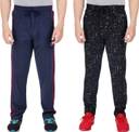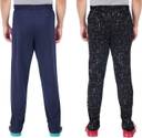 Pack of 2 Men Solid, Printed Dark Blue, Black Track Pants