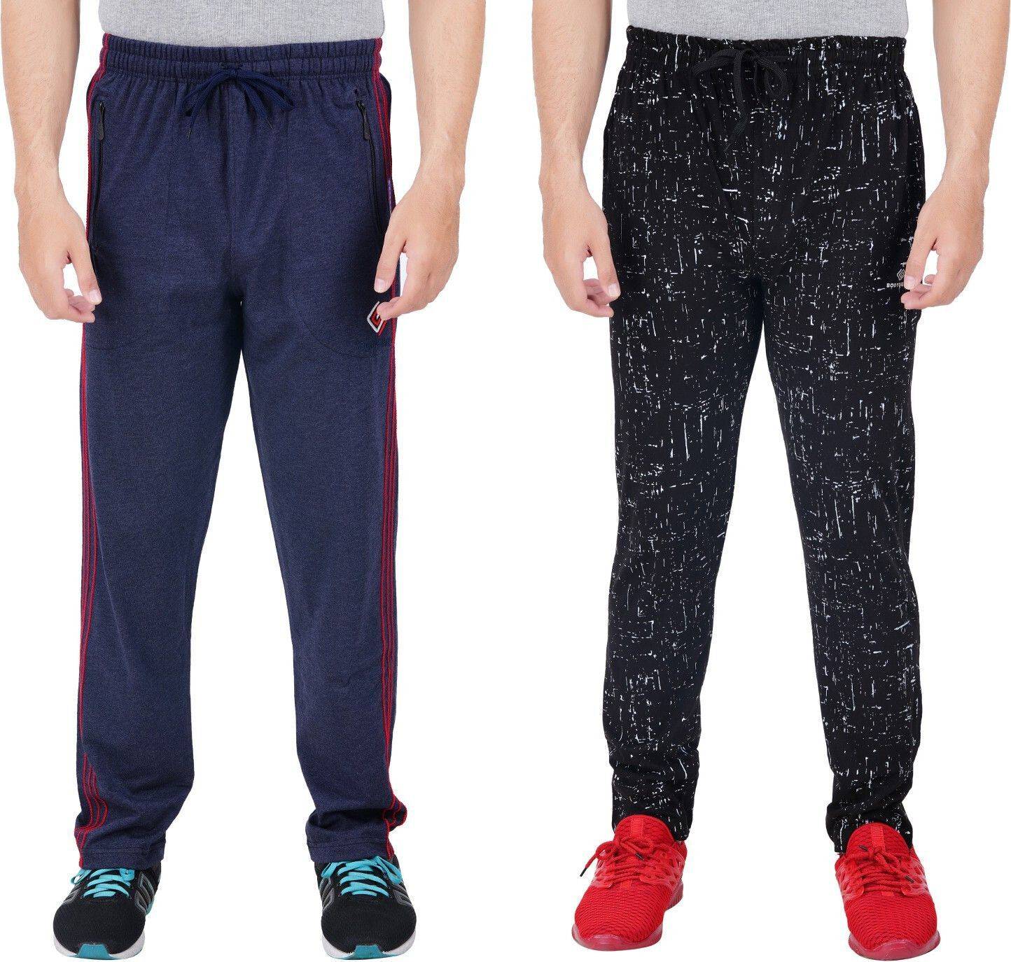FEEL TRACK Solid, Printed Men Dark Blue, Black Track Pants