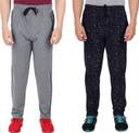 Pack of 2 Men Solid, Printed Grey, Dark Blue Track Pants