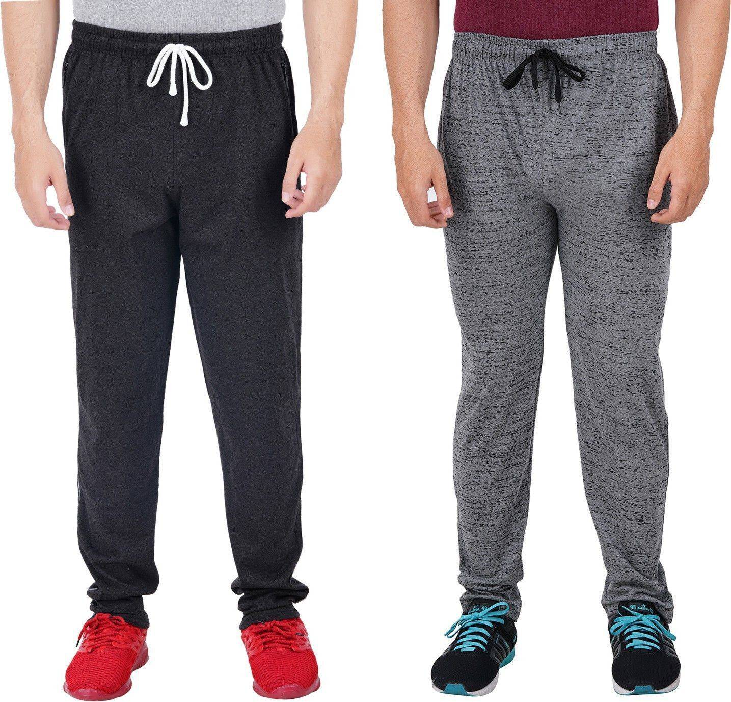 Pack of 2 Men Solid, Printed Grey, Grey Track Pants