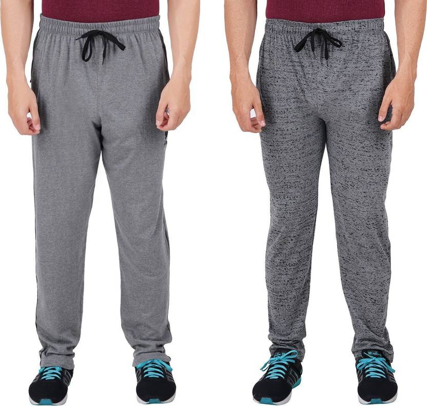 Pack of 2 Men Solid, Printed Grey, Grey Track Pants