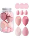 Complete Makeup Application Set(Multicolored): Our 10-piece makeup sponge set includes 4 full-size blenders, 3 mini beauty blenders, and 3 mini finger cushions, providing a comprehensive collection for flawless application of liquid, cream, and powder makeup.