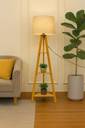 This lamp can be placed in a living room, study, or bedroom. This way, it can fit well in spaces that value calm and functional design. It can serve as a side light for reading or simply as a visual accent in quiet corners. With a neutral look and understated shape, it works across different interior themes, from modern flats to cosy family homes. Furthermore, the inbuilt shelves can be used to display potted plants, small books, decorative pieces, or everyday essentials. Hence, it can offer a simple way to combine storage with lighting.