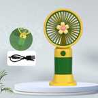 Featuring a fun character design, this fan combines style with function. The inbuilt quiet motor ensures minimal noise, making it suitable for calm environments, like offices or libraries. The handle of this fan is ergonomically shaped for a secure, comfortable hold. Hence, it offers consistent airflow during walks, travel, or light activities, keeping you cool in style.