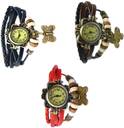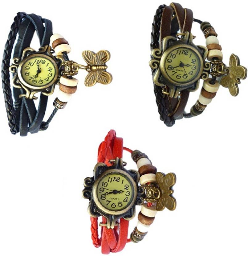 Felizo New Look Multi Strap Butterfly Bangle Bracelet Vintage Fancy Watch Combo Offer - Pack of 3 (Black, Red & Brown). Trendy and Attractive Comb Pack of Vintage Bracelet Hanging Butterfly Latkan watches for Girls and Women. These long lasting multi-strap watches are made of leather and are your perfect companion for any occasion.