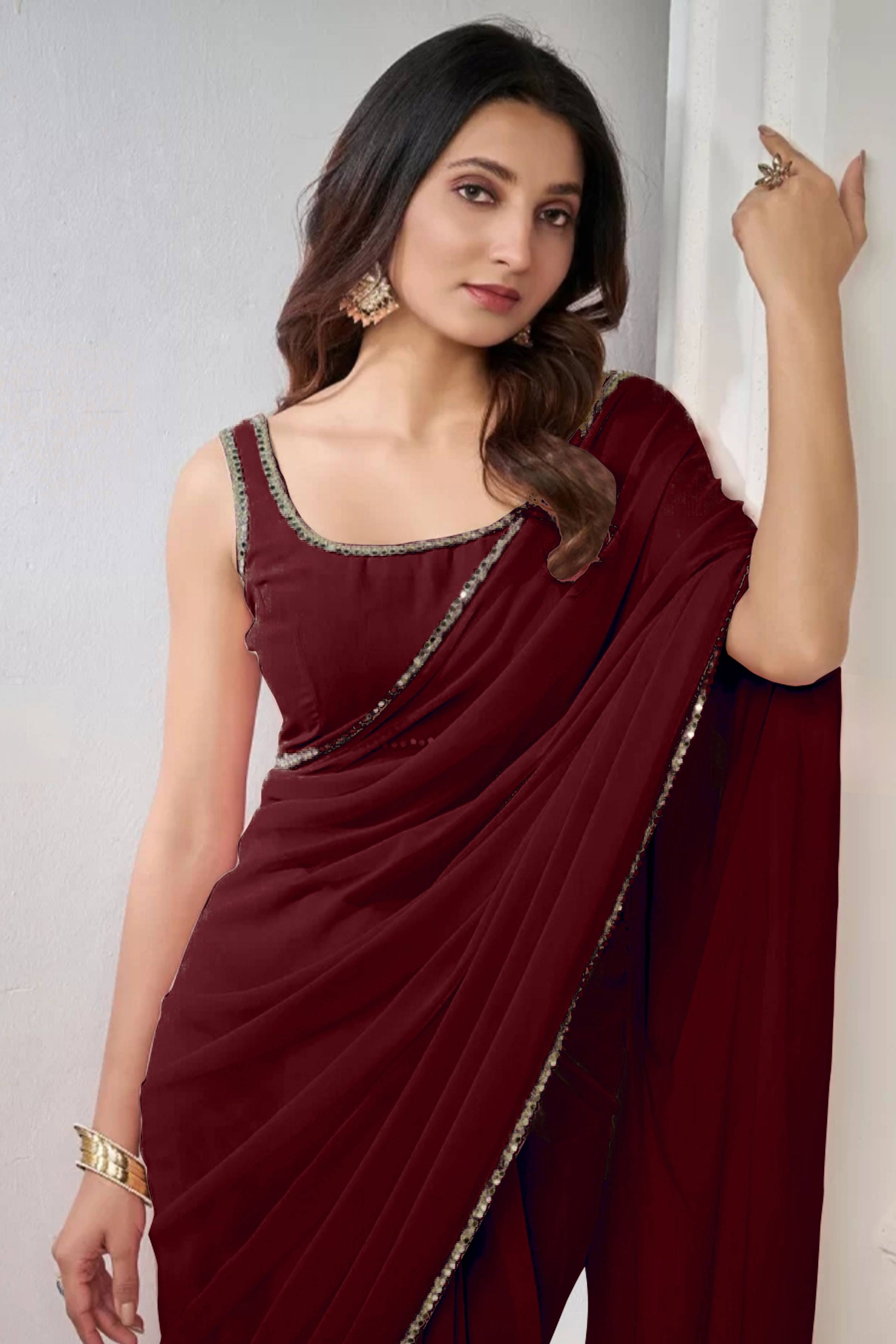 Solid/Plain Bollywood Georgette Saree (Maroon)