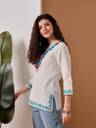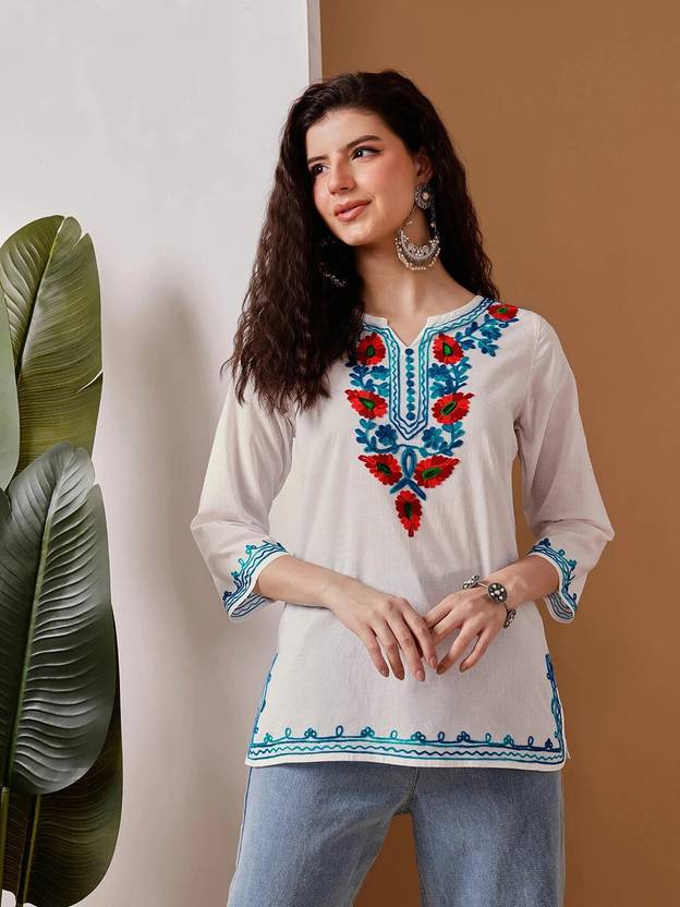 Pure Cotton Floral Embroidered Short Kurti Notch Neck Regular Sleeves