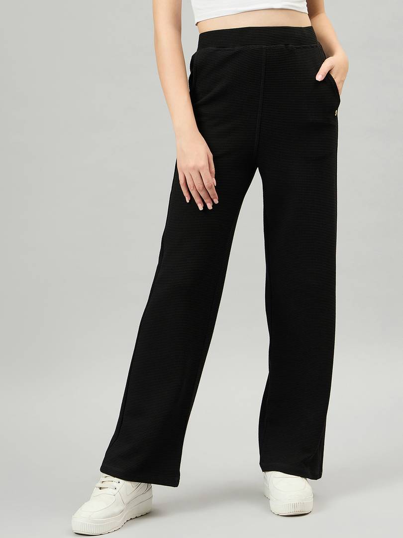 Women Solid Black Track Pants