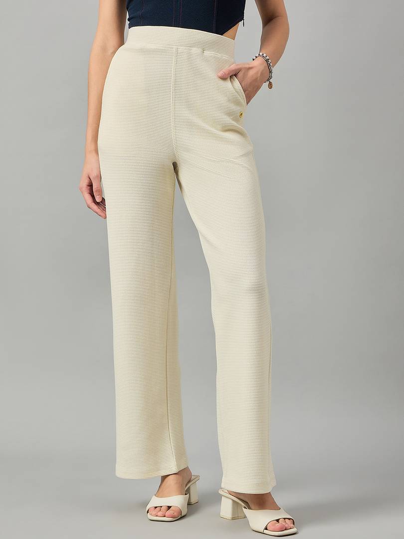 Women Cream coloured track pant has an elaticated waistband and a inner drawstring closure and 2 side pockets