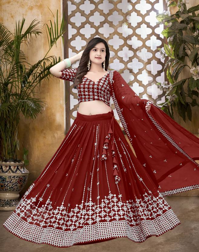 Femisha Creation Girls Lehenga Choli Ethnic Wear, Fusion Wear, Party Wear Embroidered Lehenga, Choli and Dupatta Set (Orange, Pack of 1)