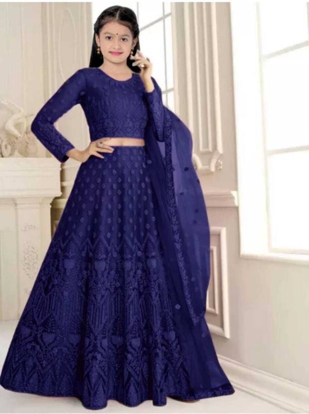 Femisha Creation Girls Lehenga Choli Western Wear Embroidered Lehenga, Choli and Dupatta Set (Blue, Pack of 1)