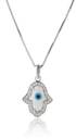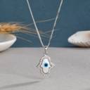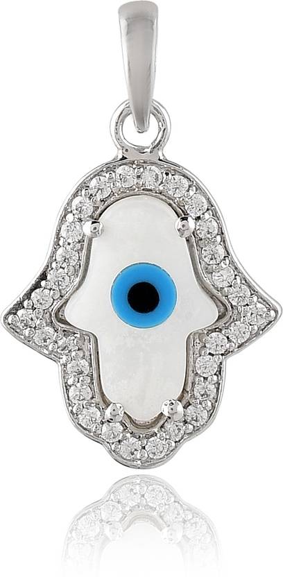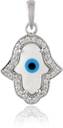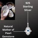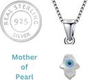 925 Silver Mother of Pearls Hamsa Hand Evil Eye Pendant for Women & Girls
