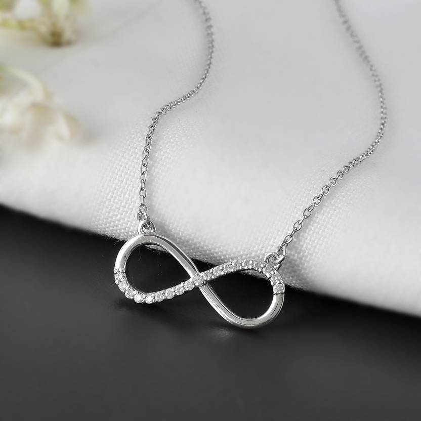925 Sterling Silver Zirconia Crystal Infinity Shape Pendant with Chain Necklace