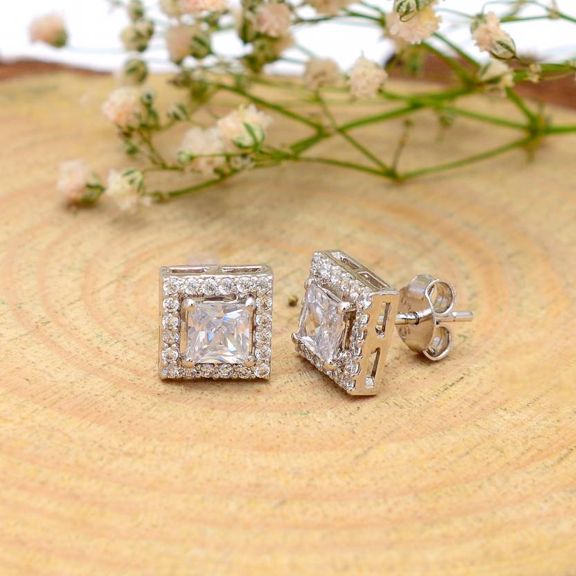 925 Sterling Silver Zirconia Crystal Square Stud Earrings for Women & Girls