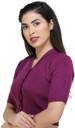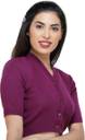 Made With Best Quality Cashmilon Wool, Knitted Blouse Made on Automatic Machines in Ludhiana, Punjab. Designer Lace Made of Same Knitted Material Runs Through Entire Open Front. Having 5 Pearl Finish Branded Buttons, Front Opening. Snug Fits Like a Half Sleeves Blouse to Women Wearing Saree & Also Used as Woolen Top By Girls.