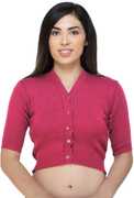 Made With Best Quality Cashmilon Wool, Knitted Blouse Made on Automatic Machines in Ludhiana, Punjab. Designer Lace Made of Same Knitted Material Runs Through Entire Open Front. Having 5 Pearl Finish Branded Buttons, Front Opening. Snug Fits Like a Half Sleeves Blouse to Women Wearing Saree & Also Used as Woolen Top By Girls.