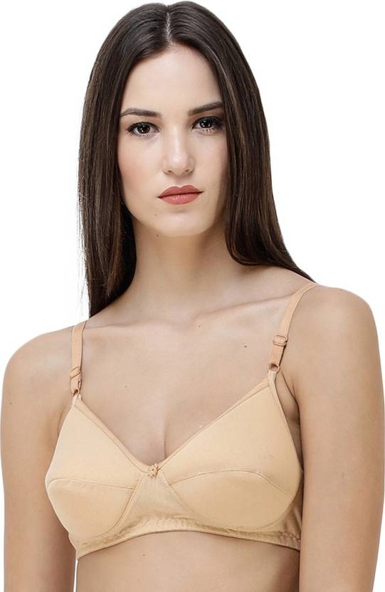 Double Layered, Moulded, Moderately Deep, Mid-Coverage Seamed Cups, Made Fully of Interlock Hosiery Cotton, Soft Comfortable Fabric, Showing Moderate Cleavage.