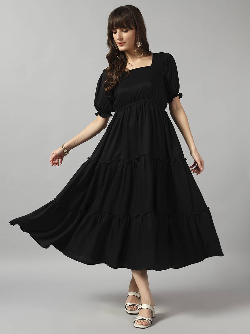 Introducing our stunning V-neck tired Gown, a perfect blend of style and comfort for any occasion. Crafted from high-quality Crepe fabric, this maxi Gown is designed to make you stand out with its elegant black tie-dye print. The black tie-dye print is not only on-trend but also adds an element of bohemian flair to your outfit. The unique patterns make each Gown one-of-a-kind, ensuring you make a fashion statement wherever you go. The puff sleeves add a romantic and whimsical feel to the Gown. It's a subtle yet eye-catching feature that complements the overall design, giving you a look that's both modern and timeless.