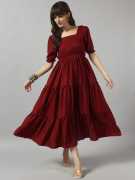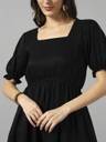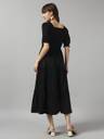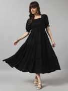 Femvy Solid Crepe Stitched Anarkali Gown (Black)