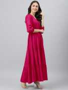 Solid Crepe Stitched Anarkali Gown (Pink)