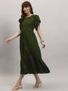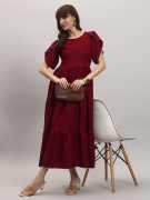 designed for women who appreciate effortless style and comfort. Crafted from a smooth, flowy fabric, this dress features a tiered A-line silhouette that adds graceful movement with every step.