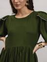 The round neckline and softly structured bodice create a flattering, feminine shape, while the statement ruffle sleeves bring a touch of modern sophistication. Perfect for brunch dates, casual outings, or semi-formal events, this dress pairs beautifully with heels or sandals for a refined, chic look.