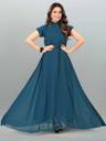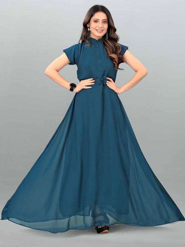 Dyed Georgette Stitched Flared/A-line Gown (Blue)