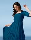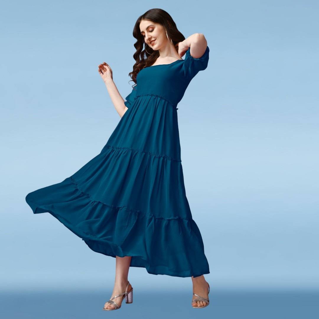 Solid Georgette Stitched Flared/A-line Gown (Blue)