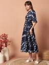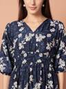 Printed Crepe Stitched Flared/A-line Gown (Blue)